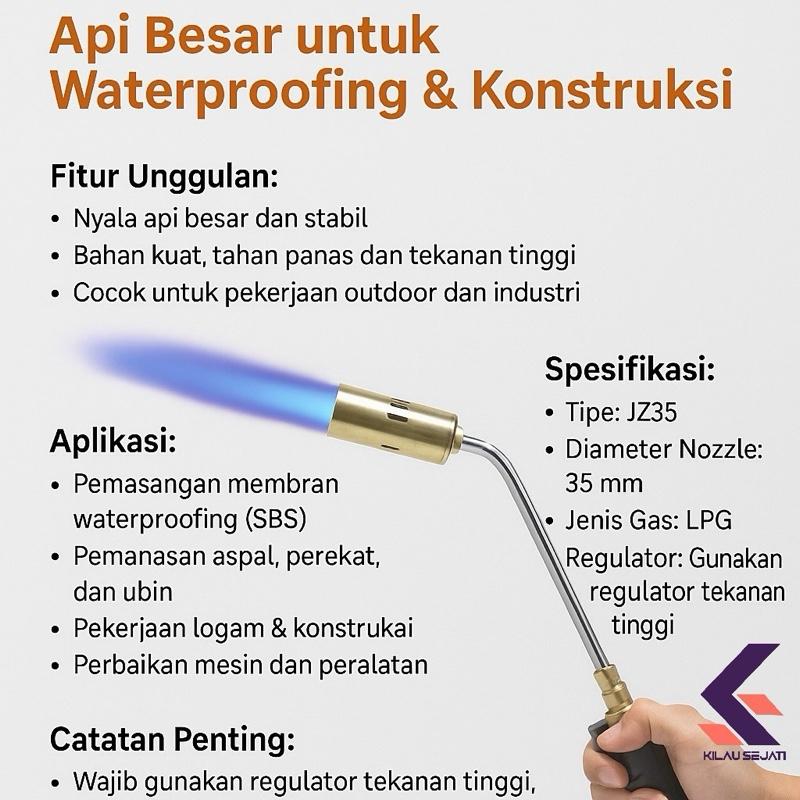 Blow Torch Gas LPG Tekanan Tinggi JZ35 – Api Besar untuk Waterproofing & Konstruksi dan Melebur Emas